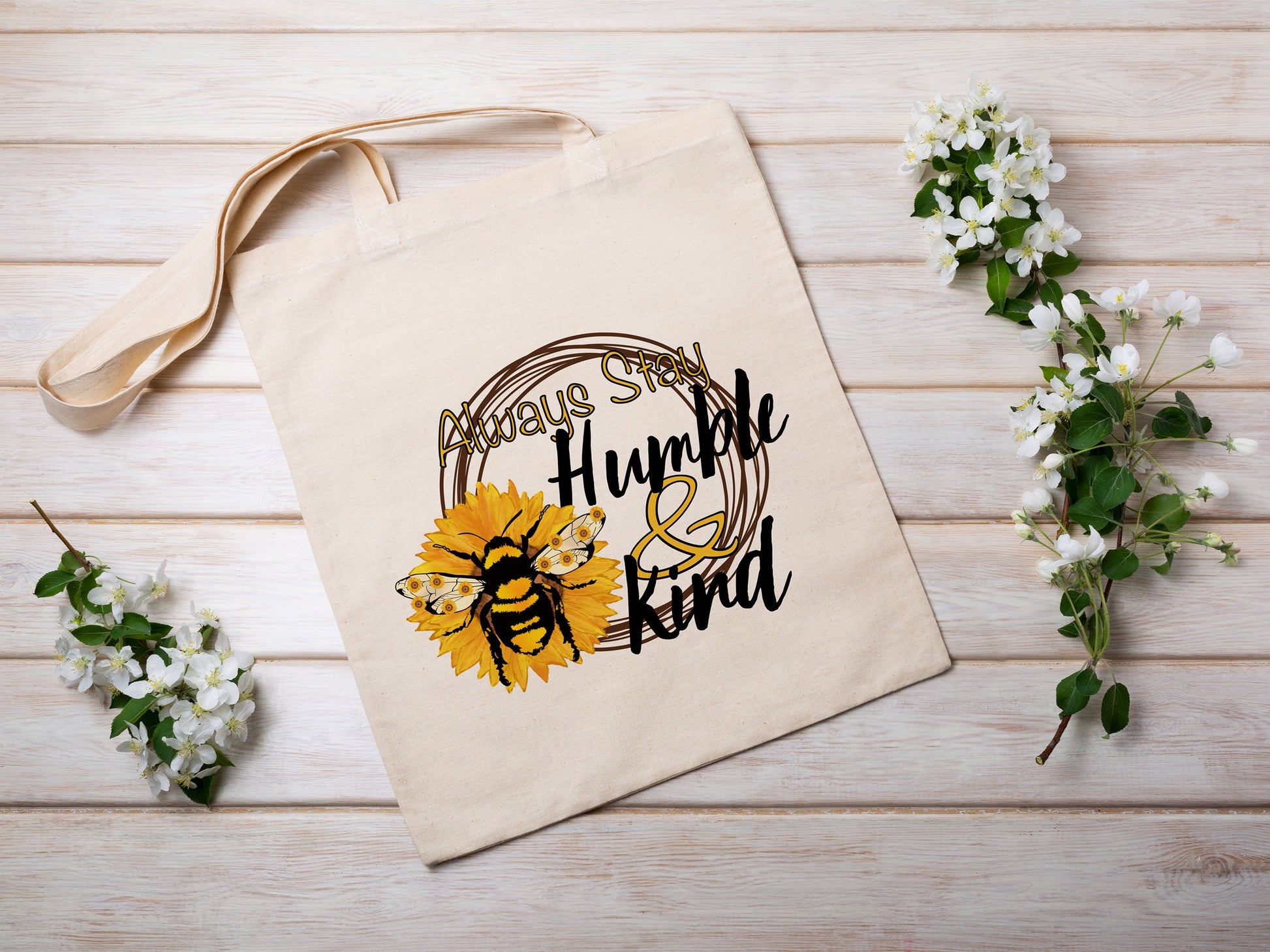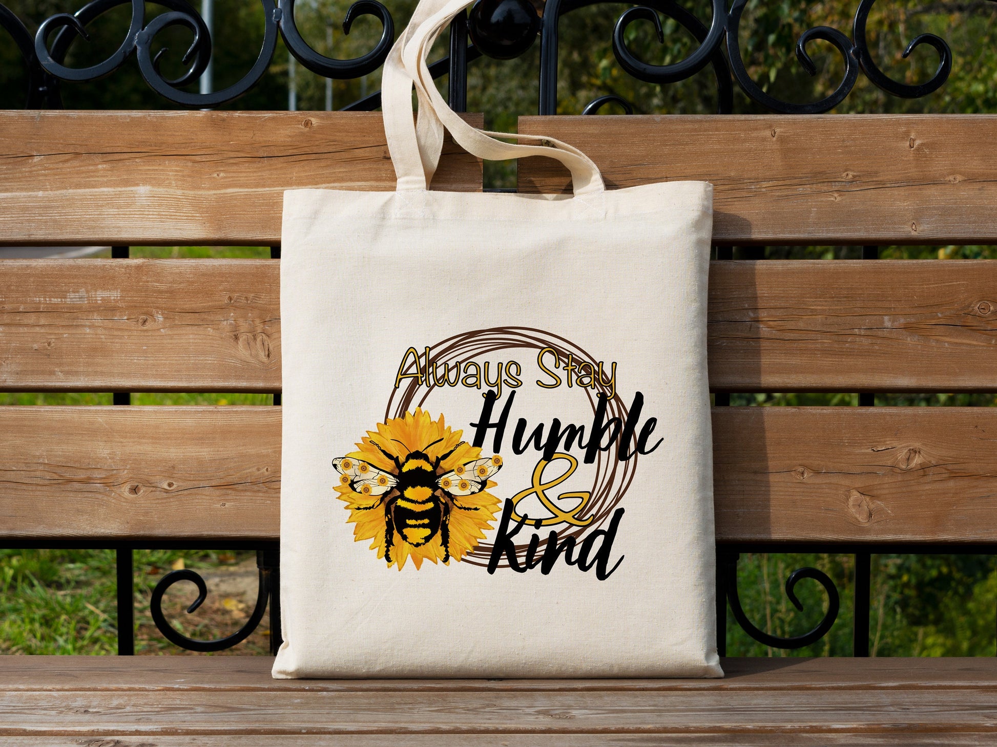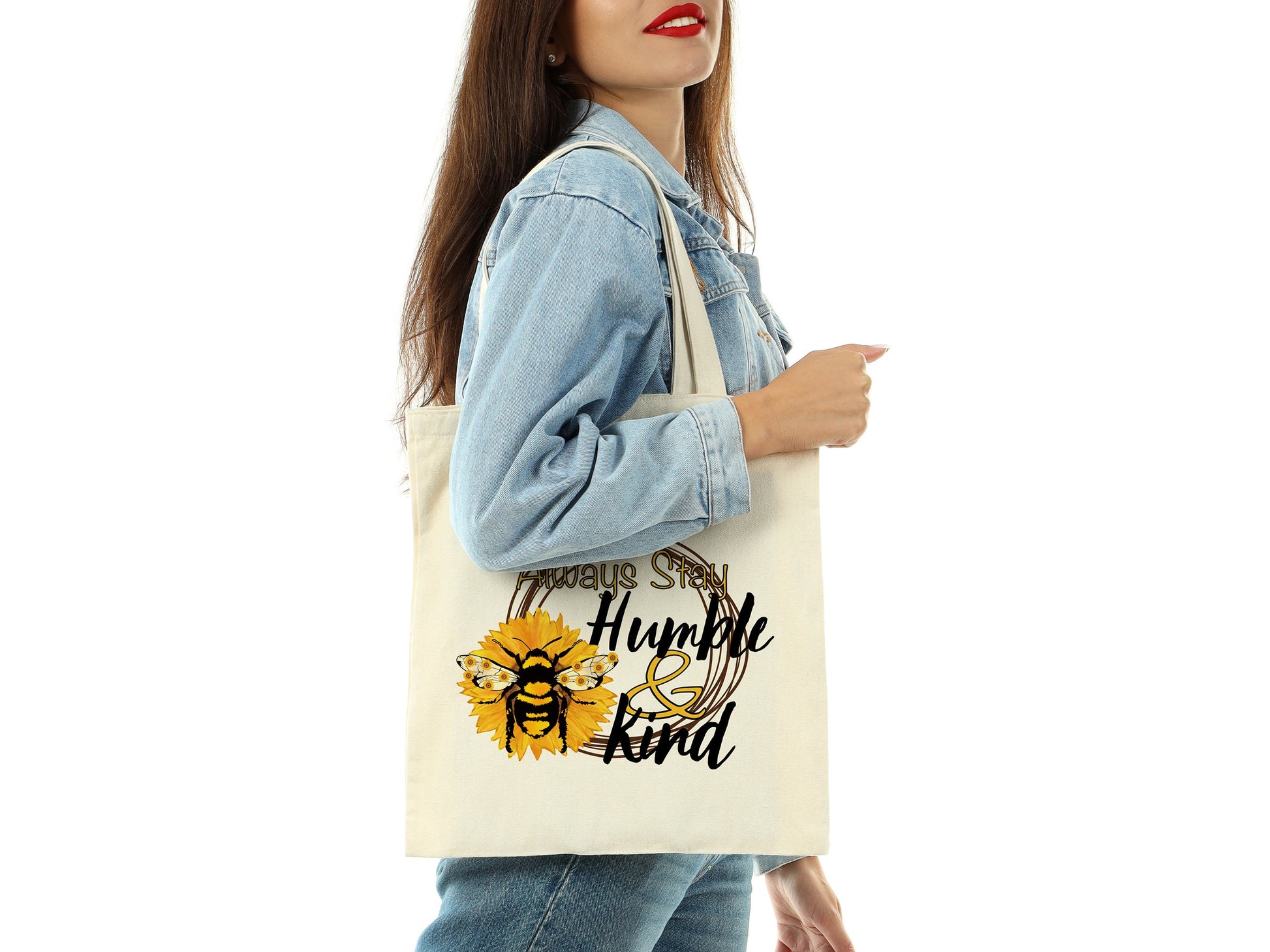 Bee Tote Bag Always Stay Humble and Kind Cotton Canvas Tote Bag