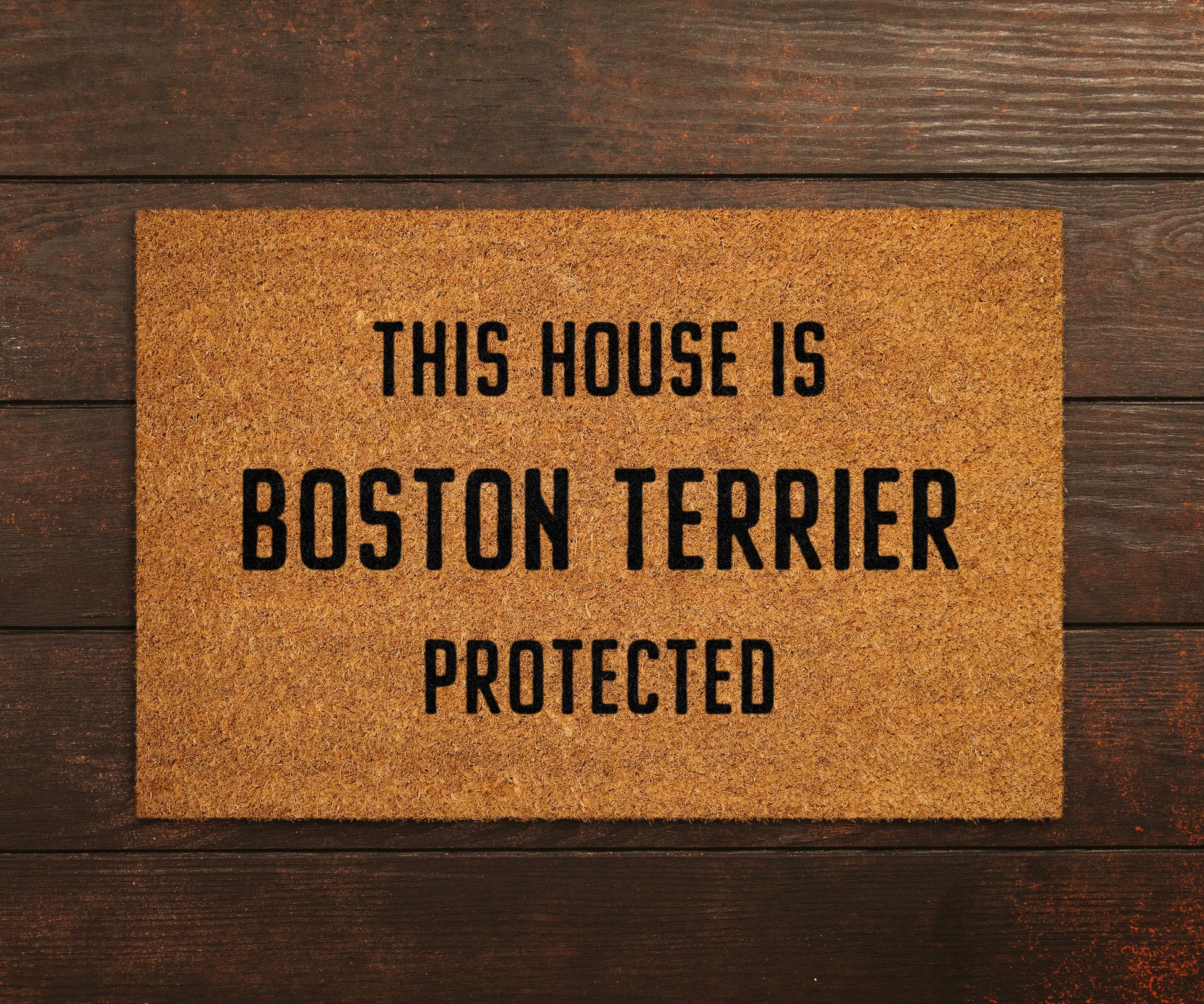 Boston Terrier Coir Door Mat, Funny Dogs Door Mat, Funny This House Boston Terrier Protected Doormat, Welcome Mats, Coir Mats