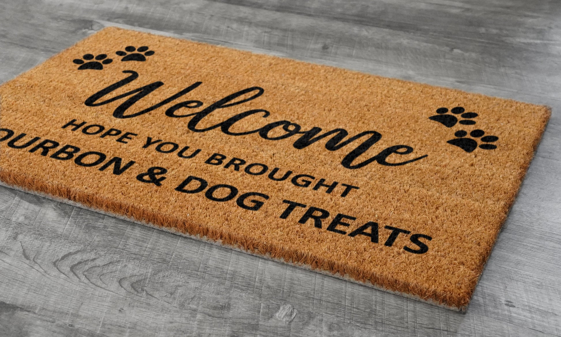 Bourbon and Dog Treats Door Mat, Personalized Doormats, Customized Doormats, Farmhouse Door mats, Spring Doormats, New Home Gift Doormats