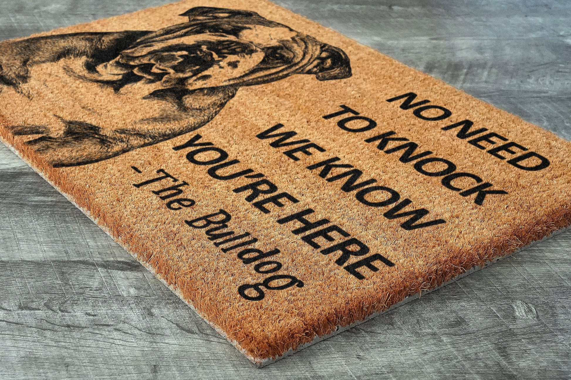 Bulldog Door Mat, Bulldog We Know You ARE Here Spring Door Mats, Bulldogs Doormat, Welcome Bulldog Outdoor Coir Mats, Bulldog Door Mat