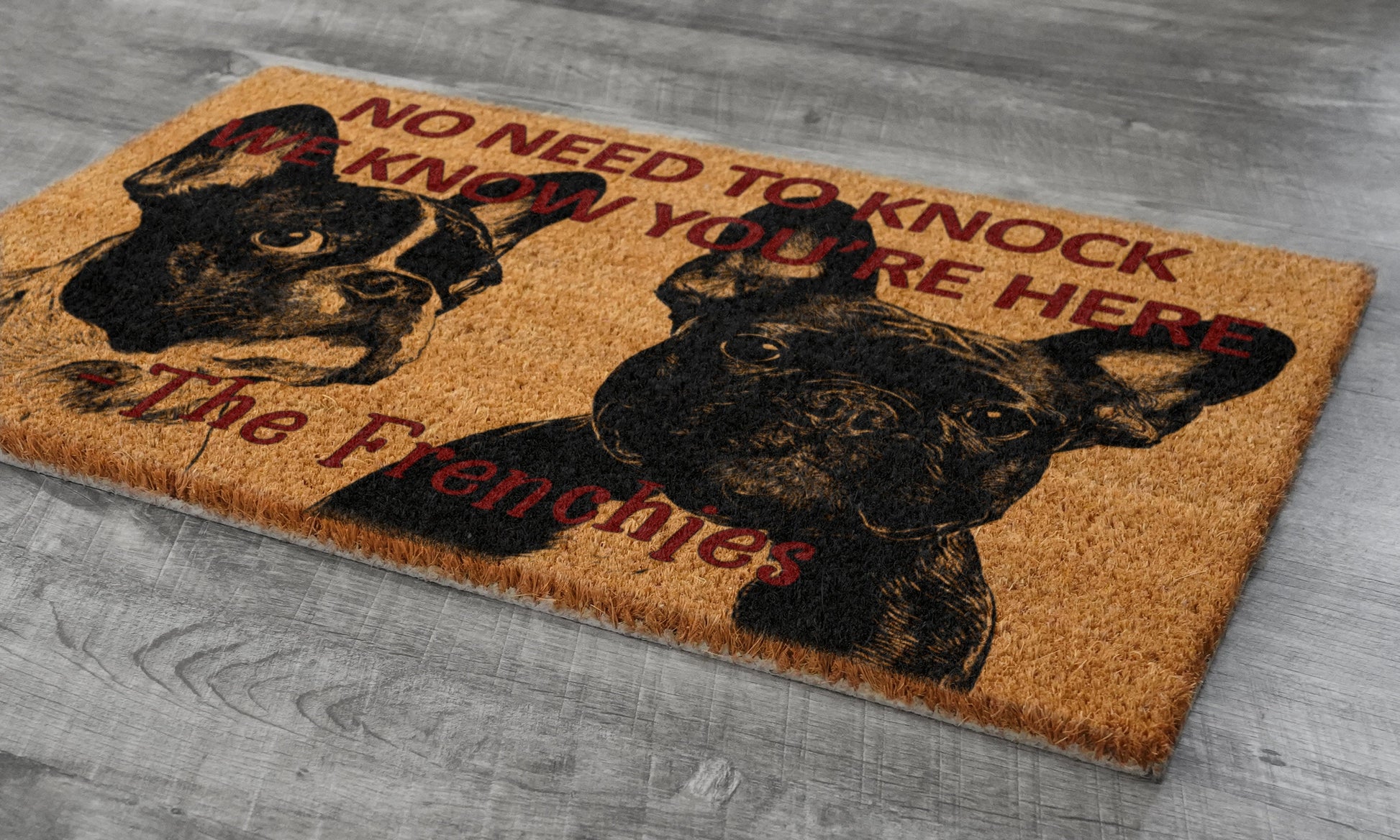 Frenchies Door Mat, French Bulldogs We Know You ARE Here Spring Door Mats, Funny French Bulldog Doormat, Welcome Frenchie Outdoor Coir Mats