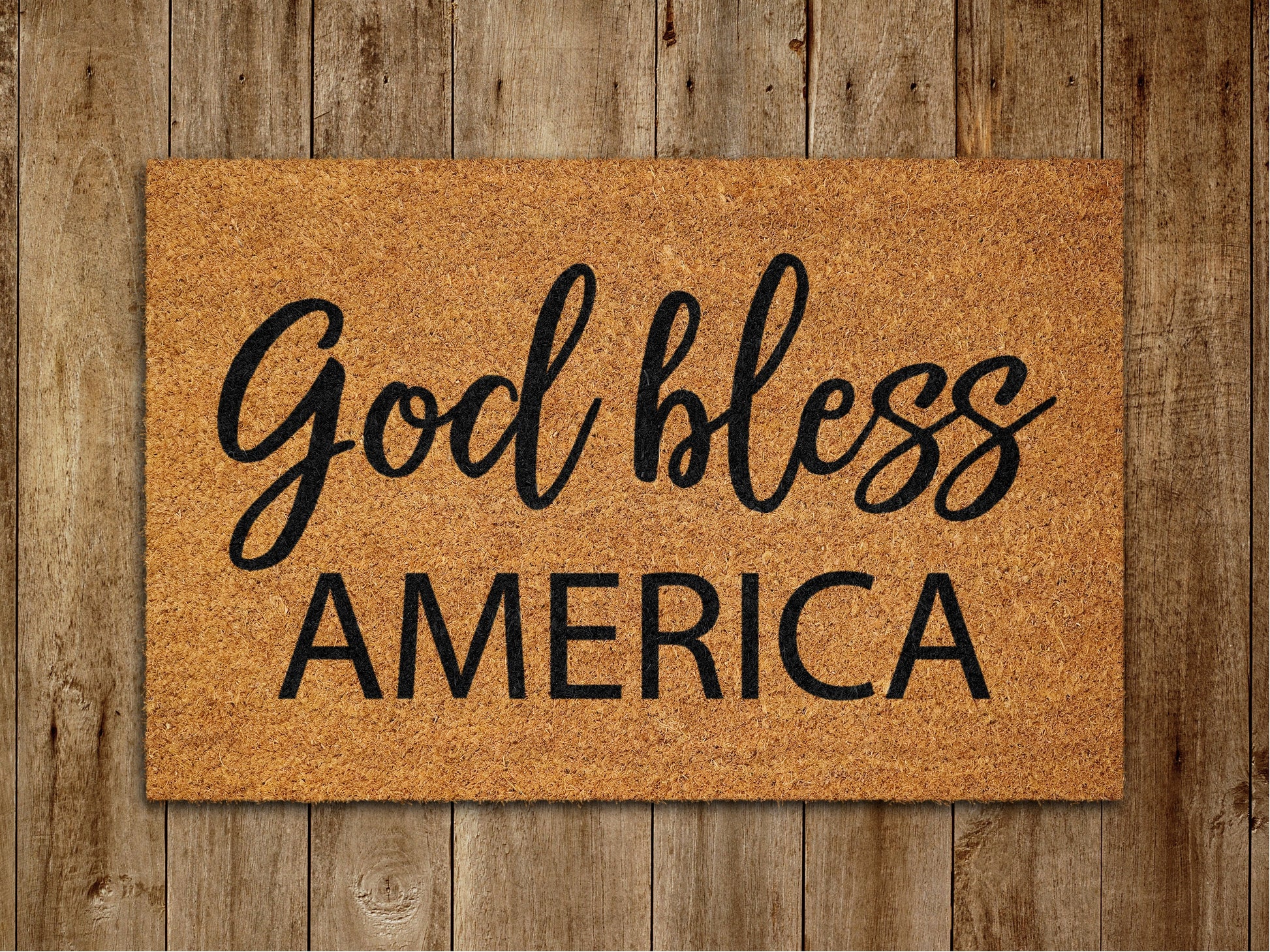 God Bless America Door Mat, God Bless America Door Mats, Funny Doormat, Welcome Outdoor Coir Mats Gift Doormat Housewarming Gift