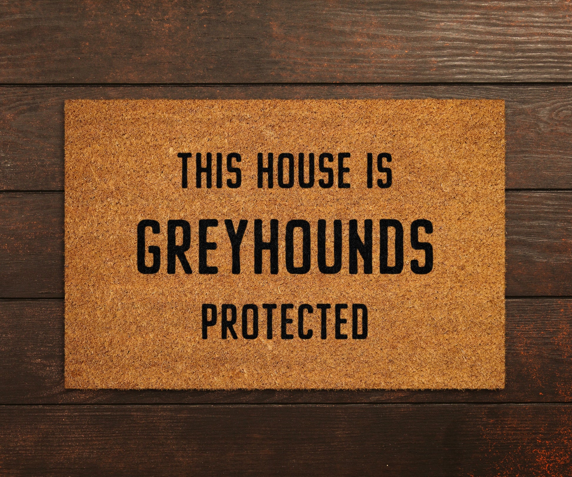 Greyhounds Coir Door Mat, Funny Dogs Door Mat, Funny This House Greyhounds Protected Doormat, Welcome Mats, Coir Mats
