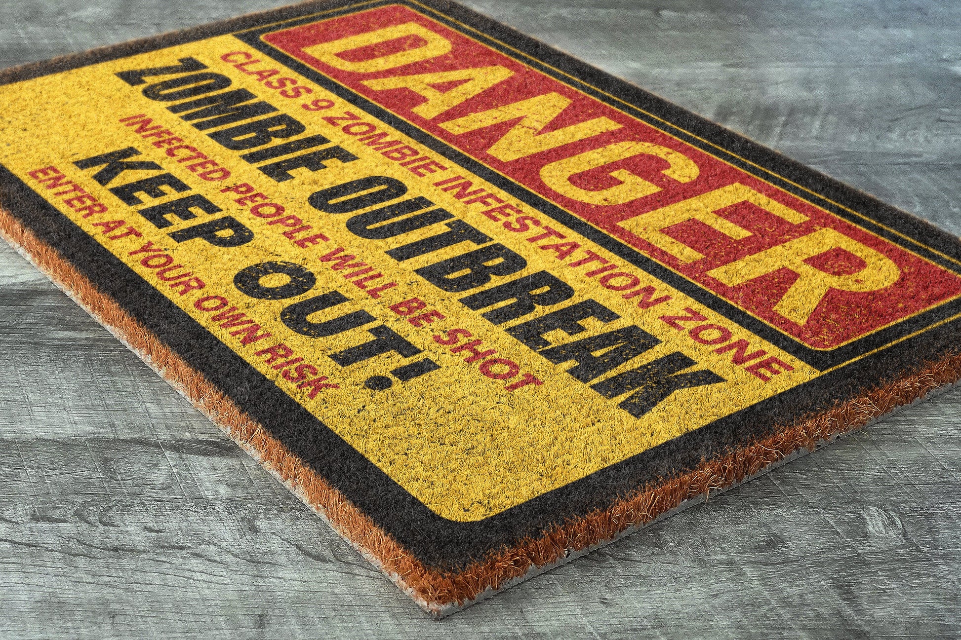 Halloween Danger Zombie Outbreak Coir Door Mat, Welcome Halloween Mat, Front Door Mat, Outdoor Mats, Funny Doormat, Halloween Decor Mat