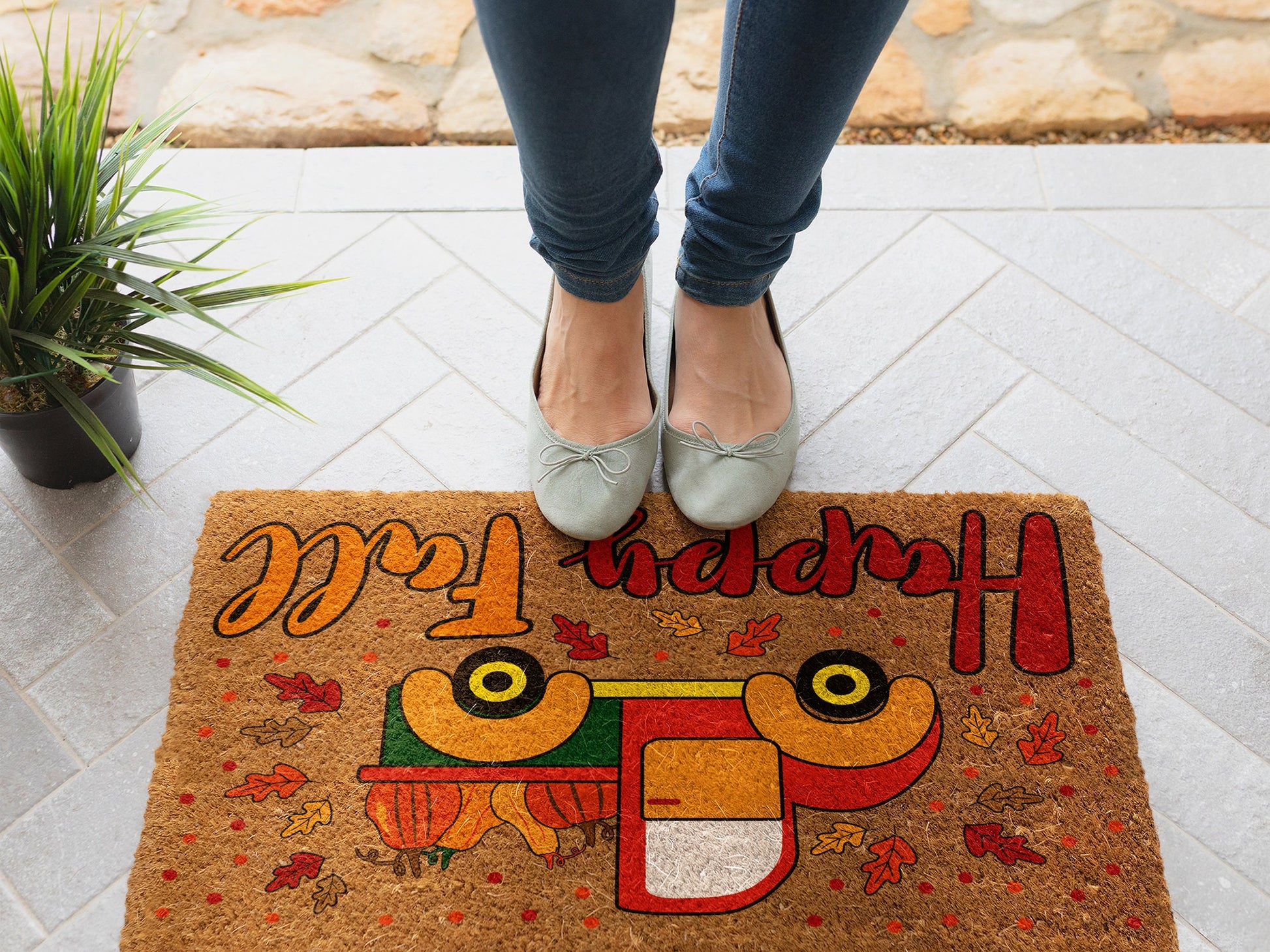Happy Fall Truck, Pumpkins Coir Door Mat, Welcome Mat, Front Door Mat, Outdoor Mats, Funny Doormat, Fall Welcome Mats, Coir Mats