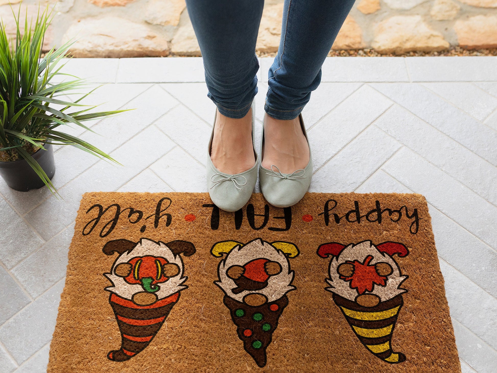 Happy Fall Y'all, Gnome Coir Door Mat, Welcome Mat, Front Door Mat, Outdoor Mats, Funny Doormat, Fall Welcome Mats, Coir Mats