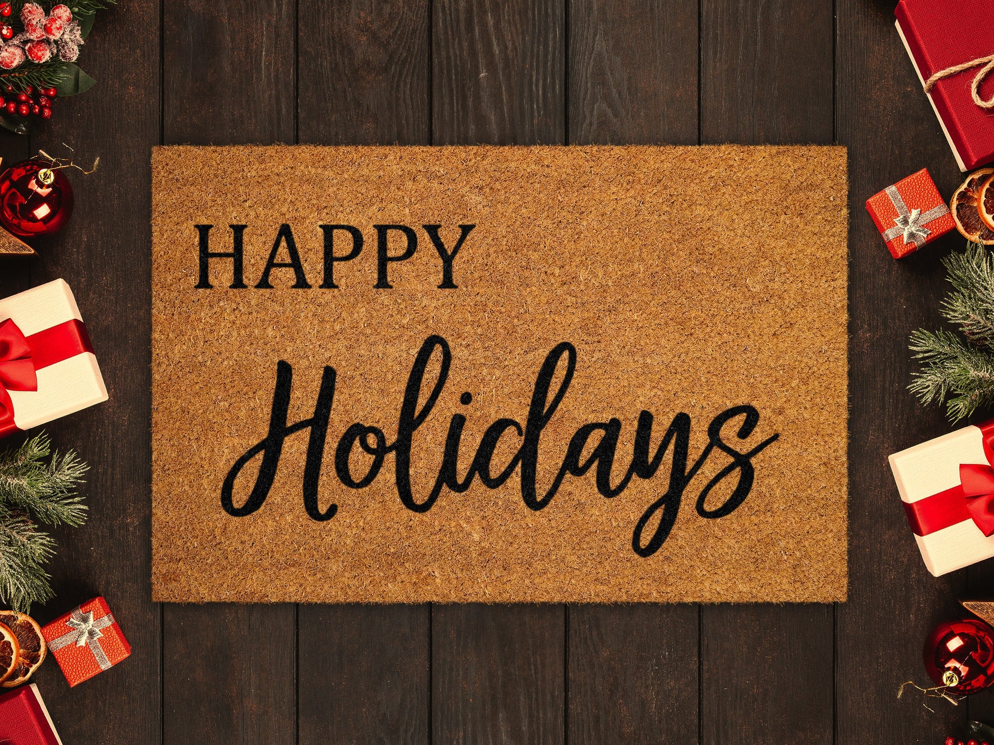 Happy Holidays Doormats, Christmas Coir Door Mat, Front Door Mat, Funny Doormat, Welcome Mats, Coir Mats