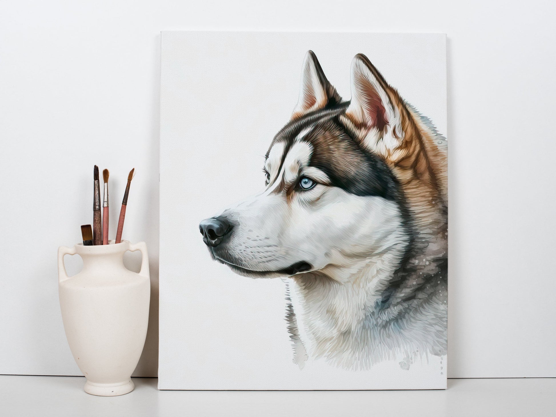 Husky Print, Canvas Husky Print, Watercolor Siberian Husky Art Paper Print, Home Decor Siberian Husky Print 1
