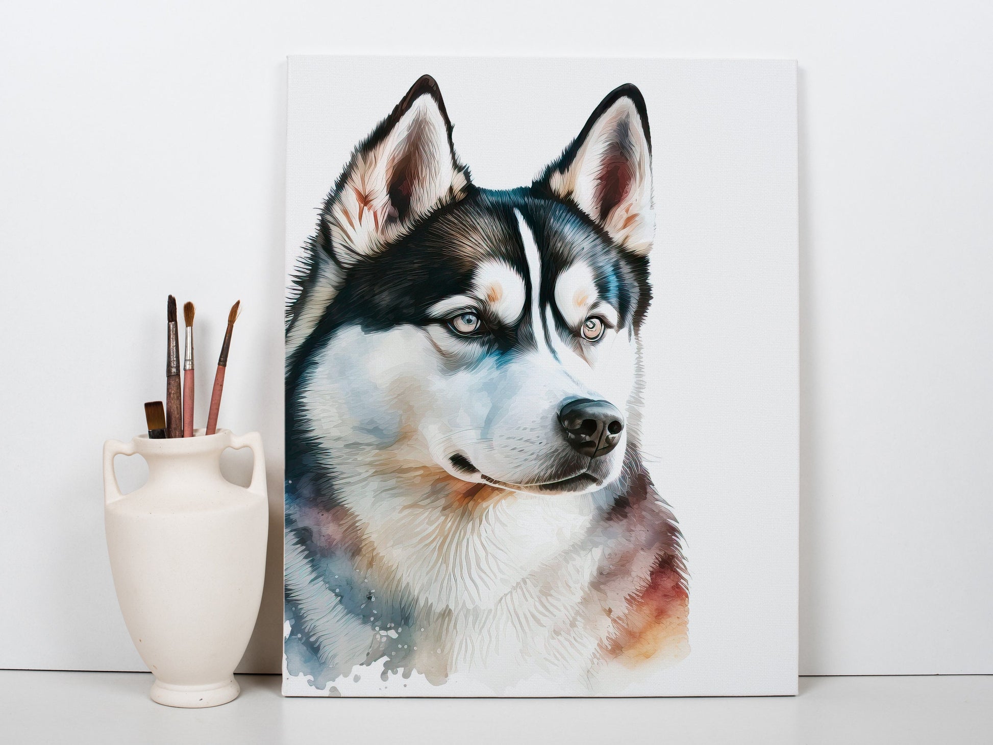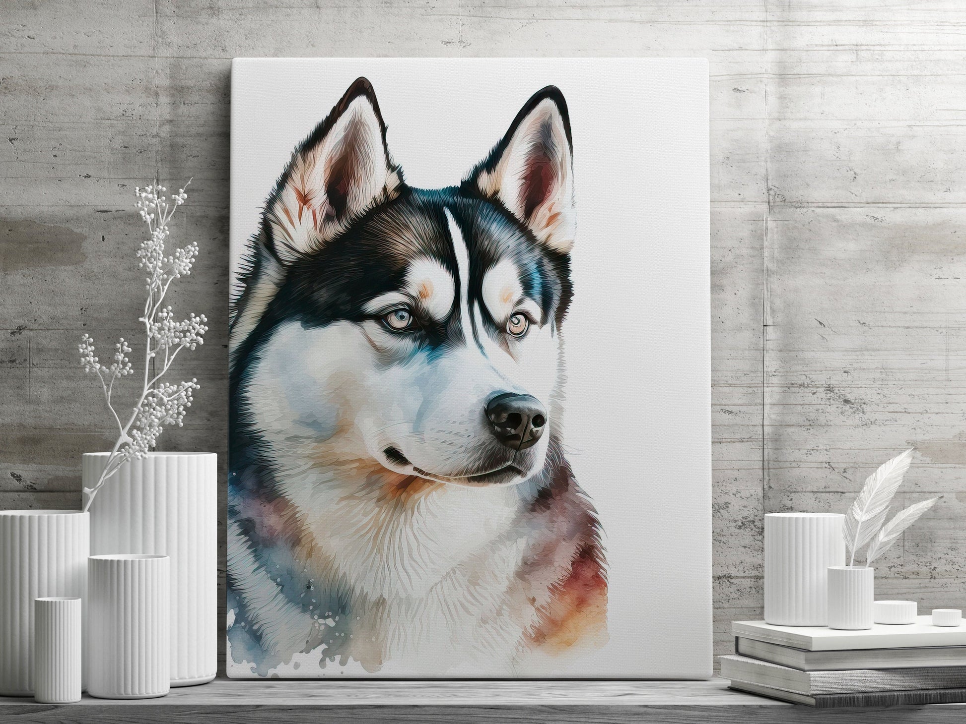 Beautiful Watercolor Siberian Husky Painting! Printed on archival paper or canvas, this watercolor Siberian Husk painting makes a great keepsake gift for housewarming, newlyweds, or to add some warmth to your home!