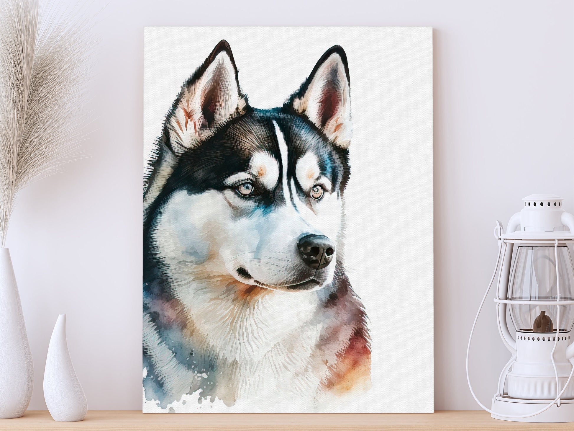 Husky Print, Canvas Husky Print, Watercolor Siberian Husky Art Paper Print, Home Decor Siberian Husky Print 9