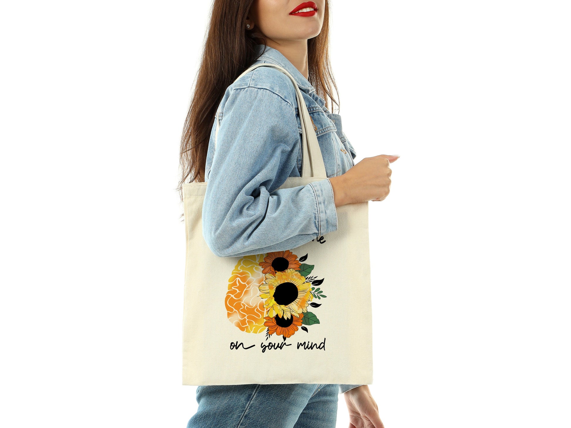 Let The Sunshine on Your Mind Cotton Canvas Tote Bag Be Kind Cotton Canvas Tote Bags is great gift for Birthdays, Mothers Day, Wedding and Christmas.