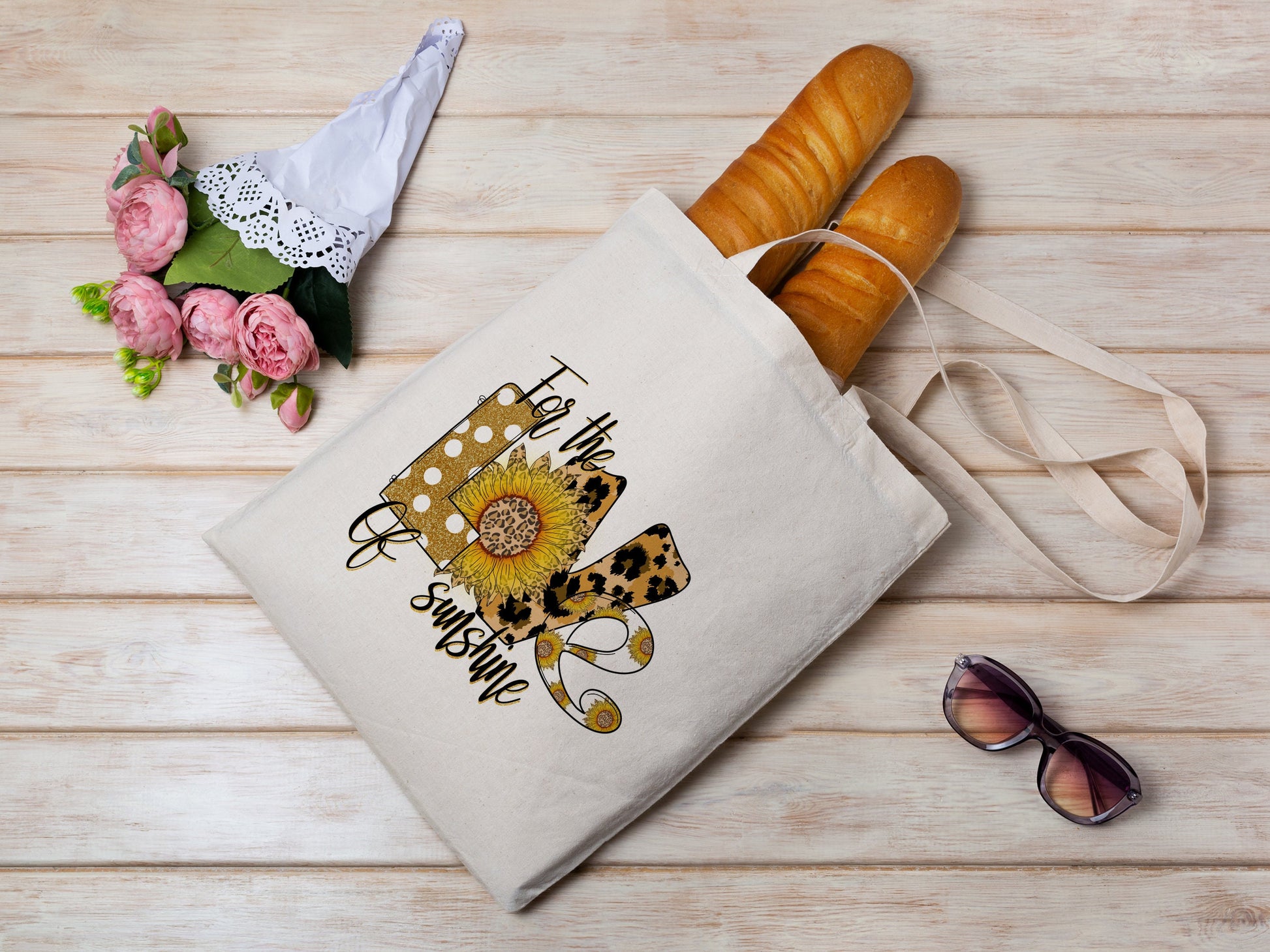 Love Sunflower Cotton Canvas Tote Bag Love Spring Cotton Canvas Tote Bags