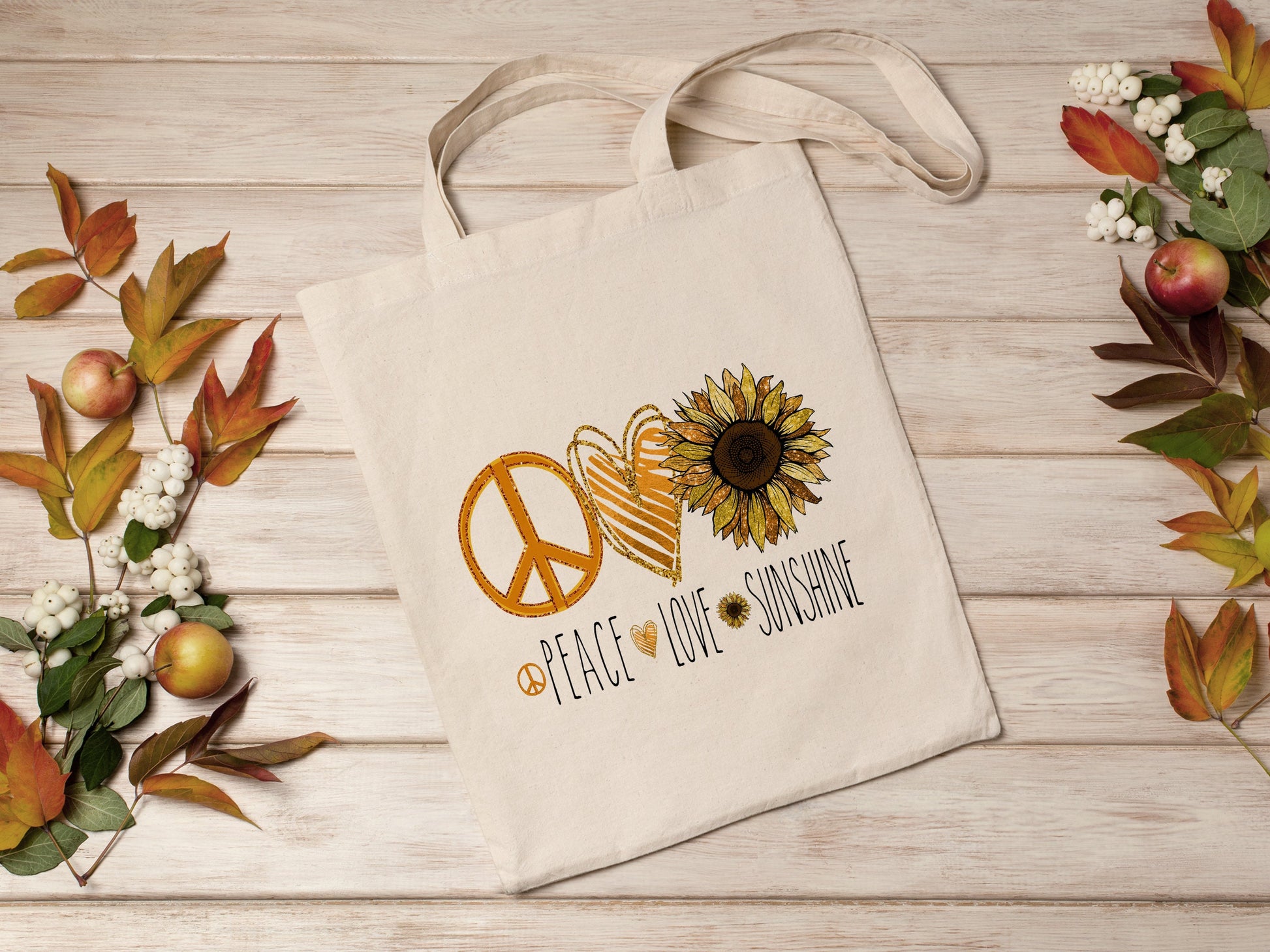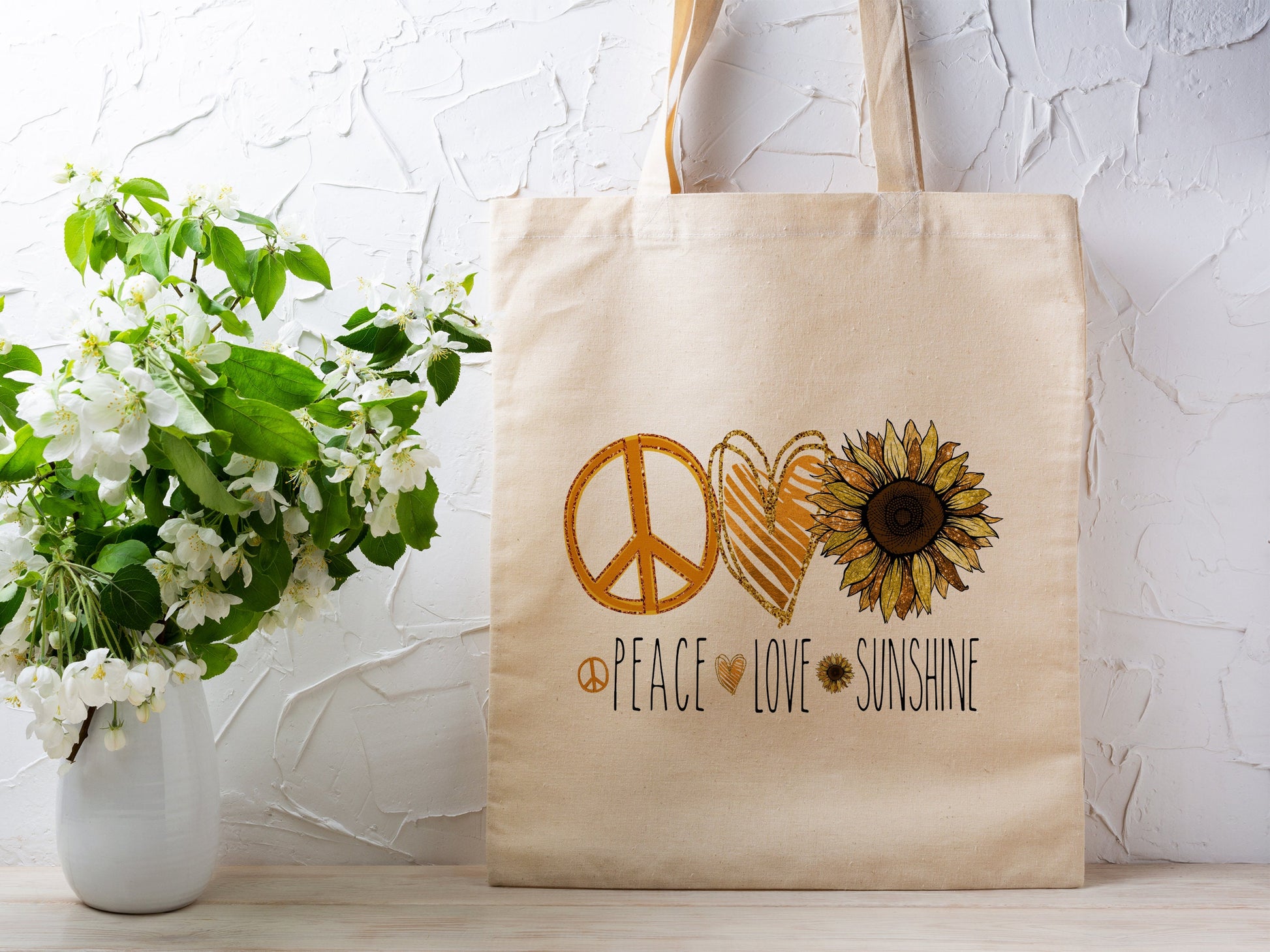 Peace Love Sunshine Cotton Canvas Tote Bag Peace Love Sunshine Cotton Canvas Tote Bags is great gift for Birthdays, Mothers Day, Wedding and Christmas.