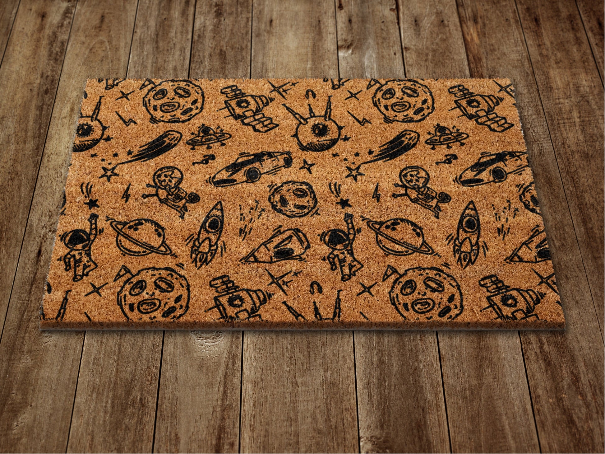 Space Door Mat, Space Ship Welcome Coir Door Mats, Funny Doormat, Welcome Outdoor Mat