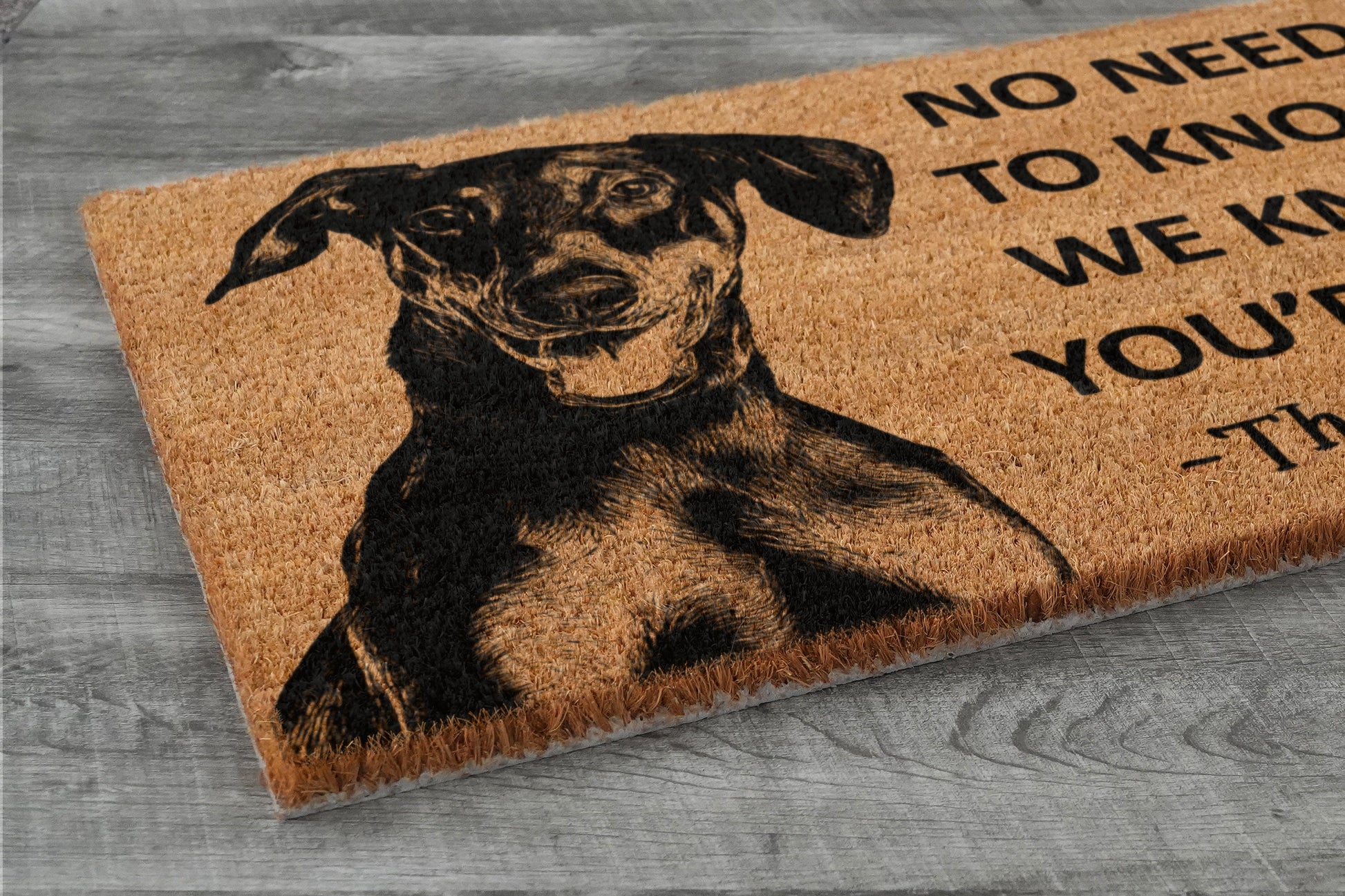 The Doberman Coir Door Mat, We Know You ARE Here The Doberman Door Mats, Funny Doberman Outdoor Doormat, Welcome The Doberman Mats