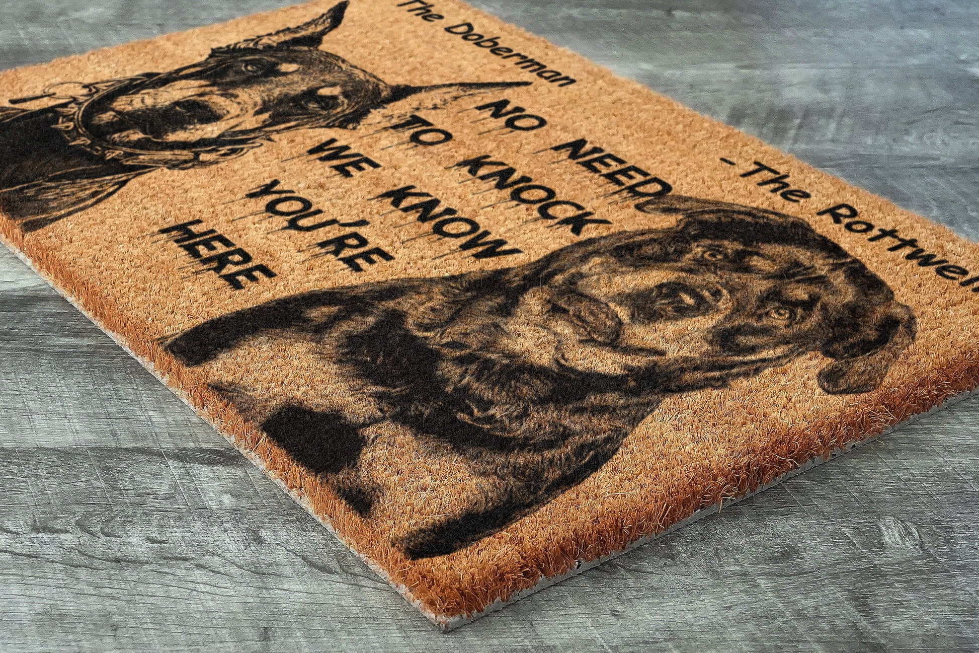 The Rottweiler Door Mat and The Doberman, We Know You ARE Here Rottweiler Dog Door Mats, Funny Doberman Doormat, Welcome Mats