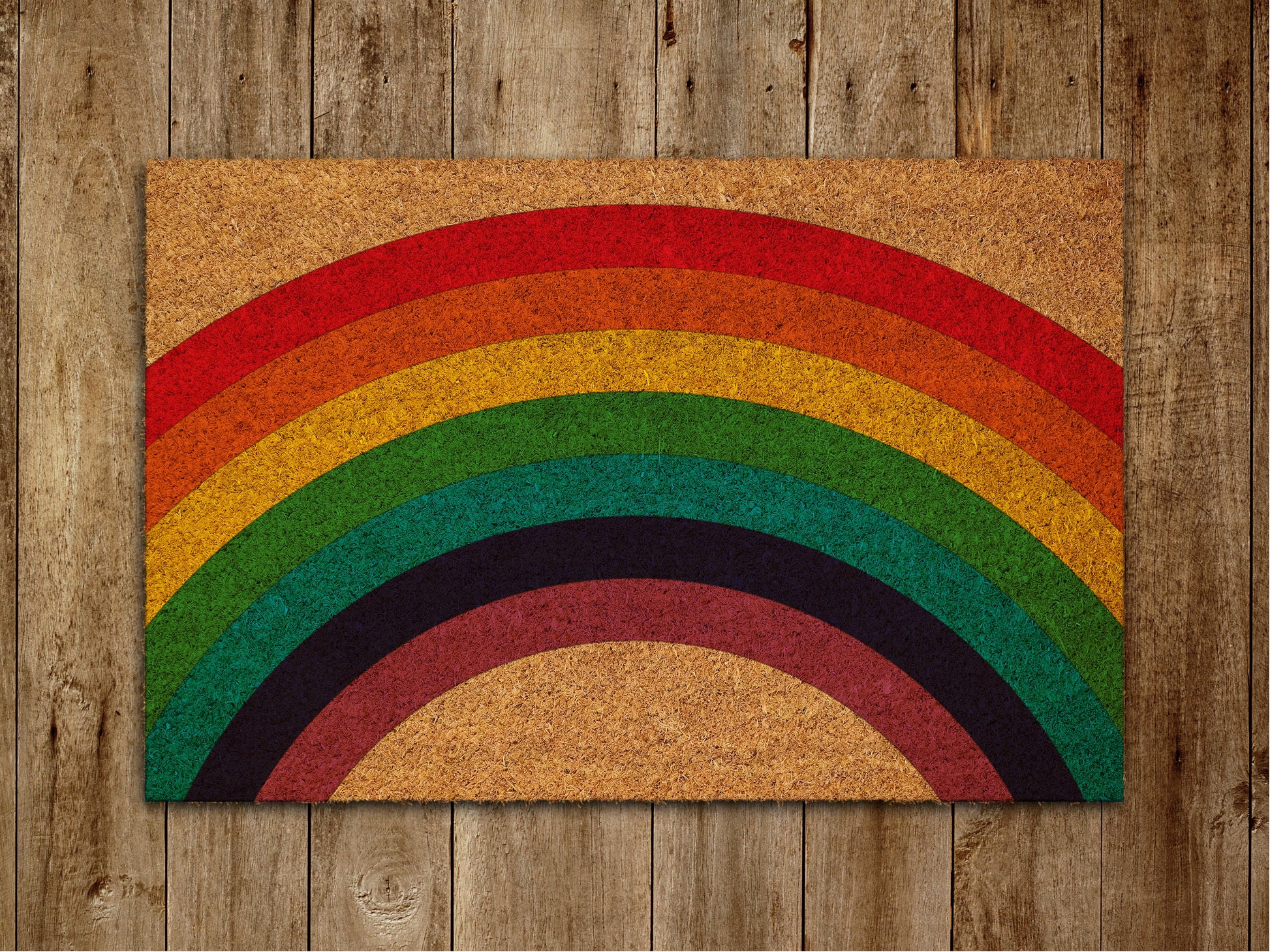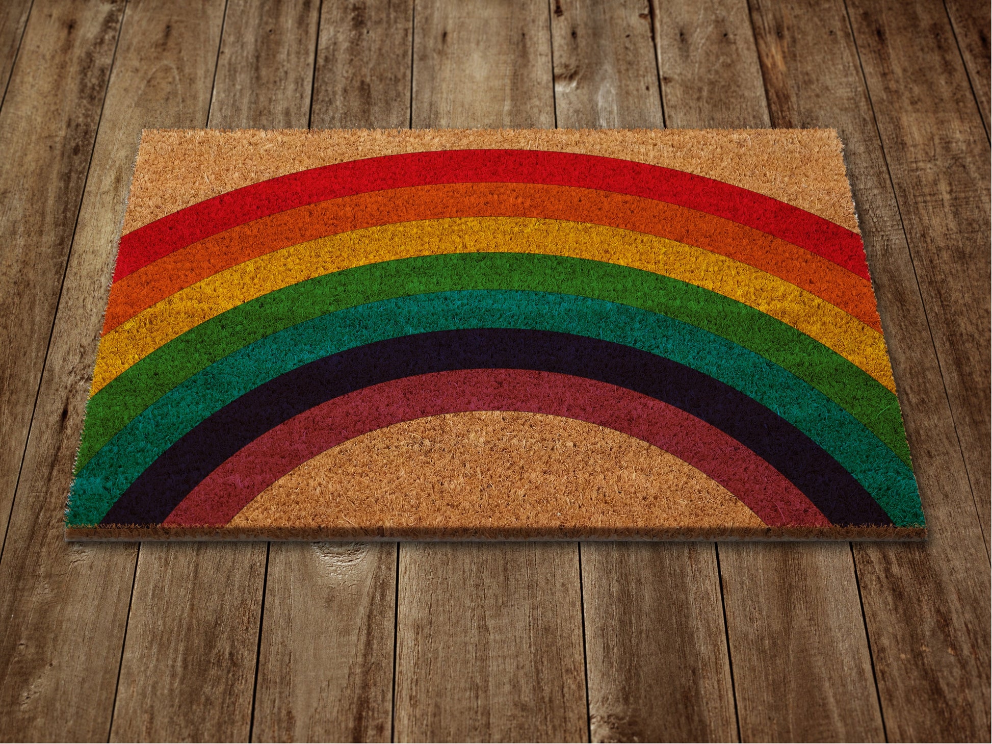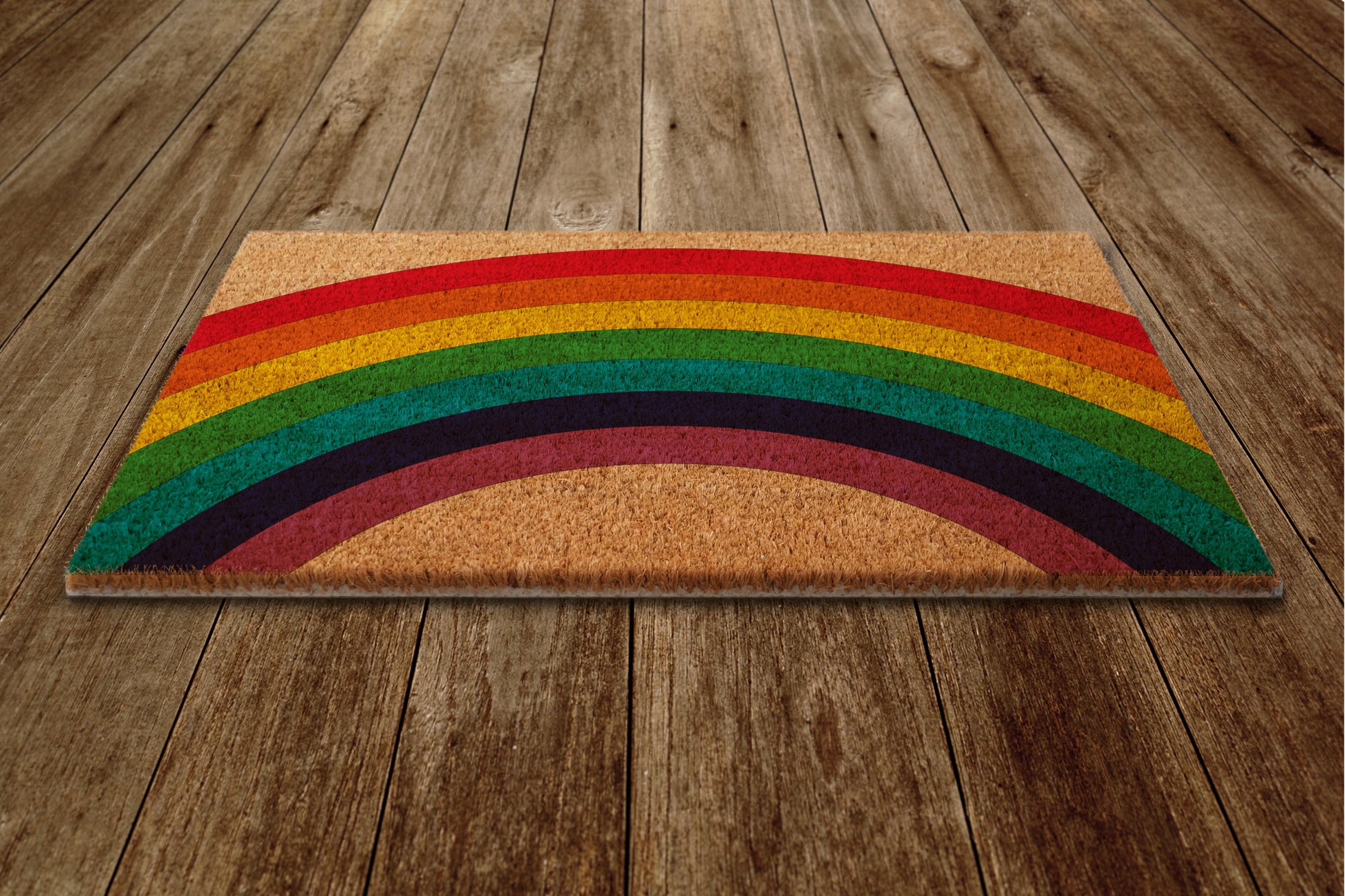 Under the Rainbow Door Mat, Rainbow Coir Door Mats, Funny Doormat, Welcome Rainbow Outdoor Mat