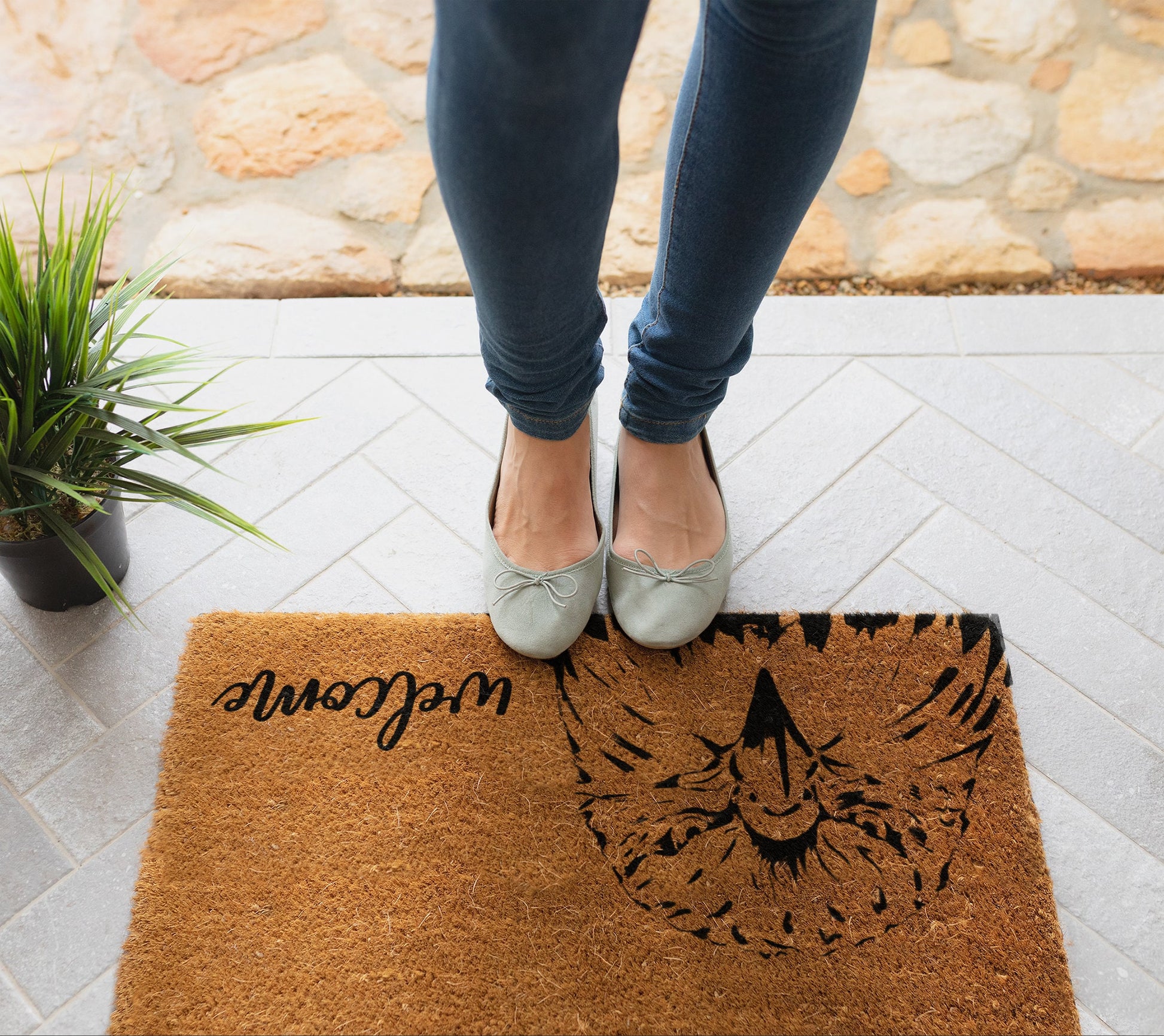 Our doormat is made with high-quality natural coir with backs that are made with slip-resistant PVC rubber backing. All mats are printed with UV-resistant ink so that they last long under all weather conditions. Our doormat is the perfect long-lasting gift for your loved ones.