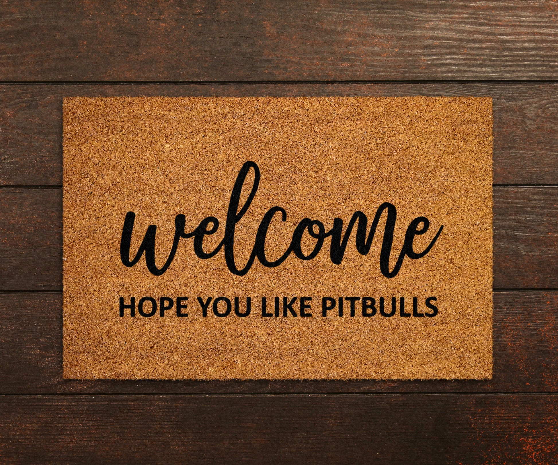 Welcome Hope You Like Pitbulls, Welcome Doormat, Funny Door Mat, New Home Gift, Wedding Gift Doormat, Welcome Hope You Like Pitbulls Mat