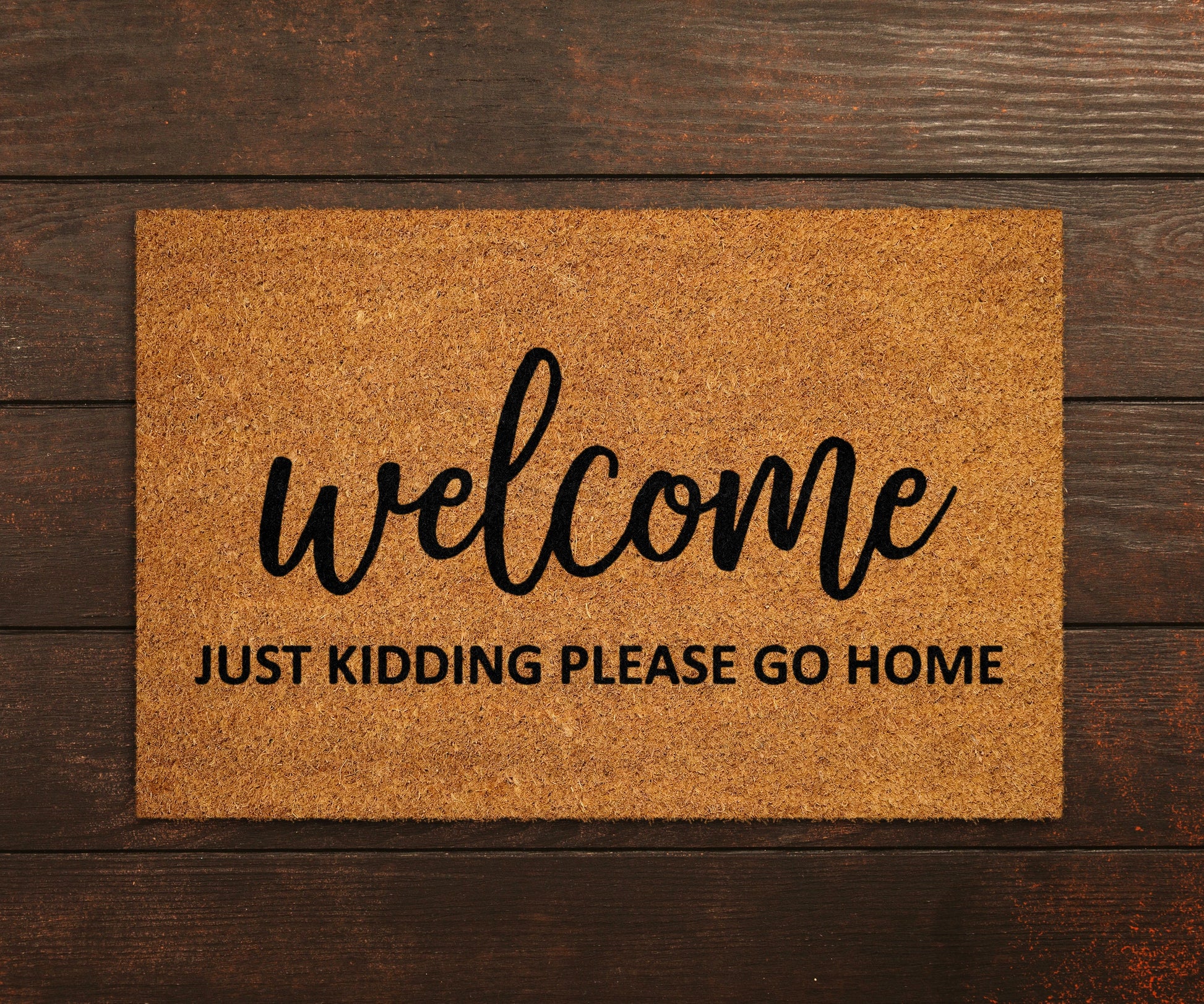 Welcome Just Kidding Please Go Home, Welcome Doormat, Funny Welcome Doormats, New Home Gift, Wedding Gift Doormat, Welcome Mat