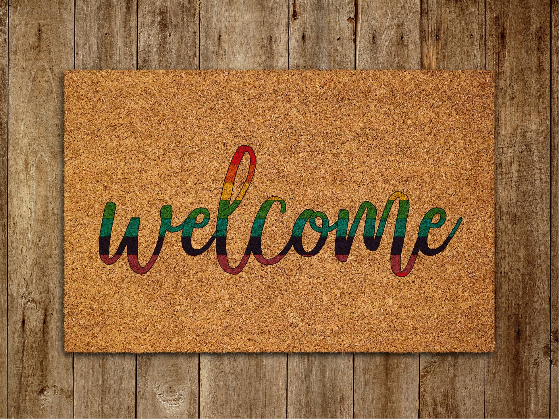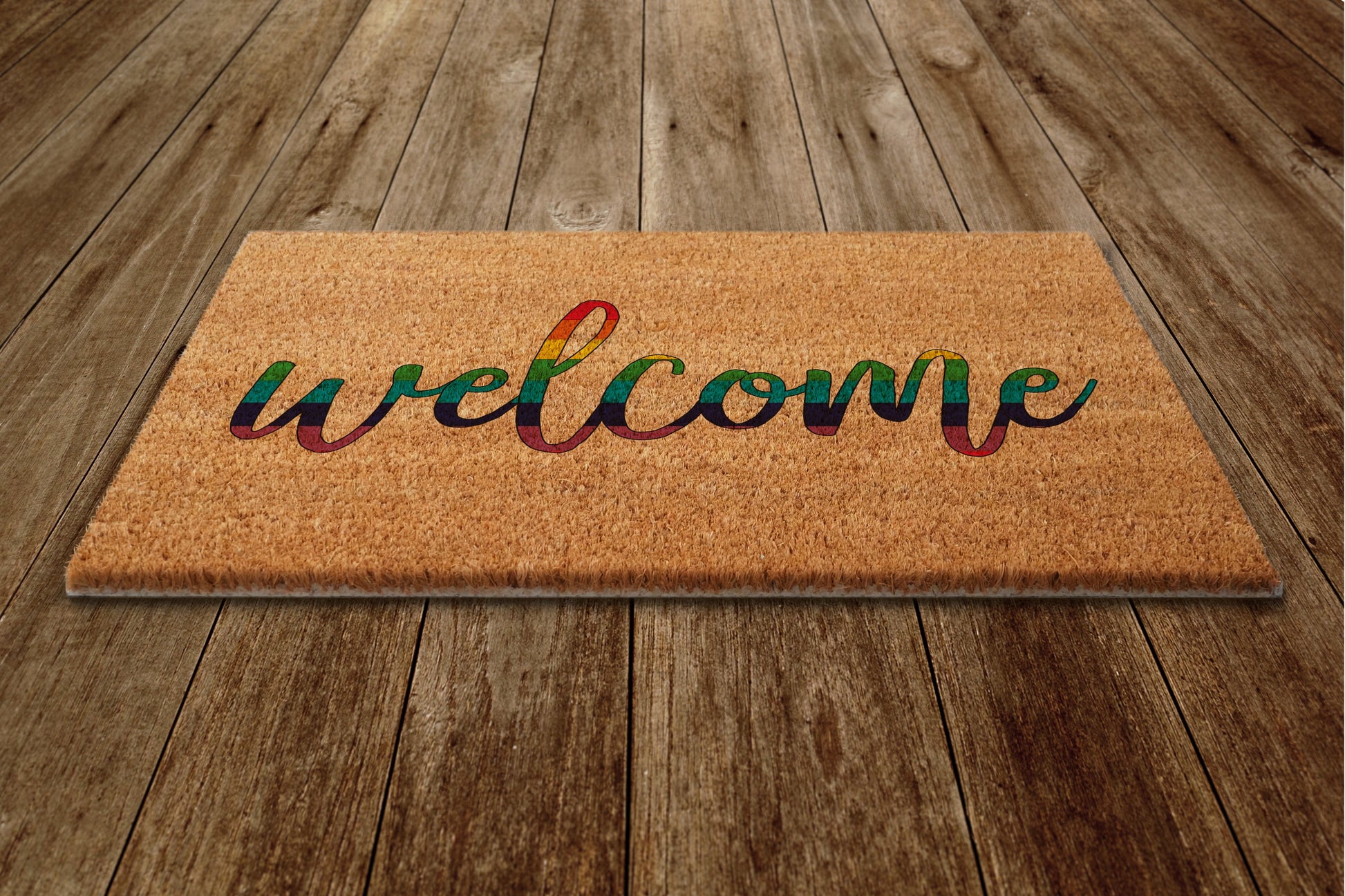 Welcome Rainbow Colors Door Mat, Rainbow Coir Door Mats, Welcome Funny Rainbow Doormat, Welcome Rainbow Outdoor Mat